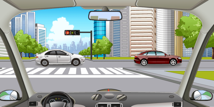 驾驶人驾驶机动车通过有交通信号灯的交叉路口时,要减速慢行,并仔细观察周围的交通情况。