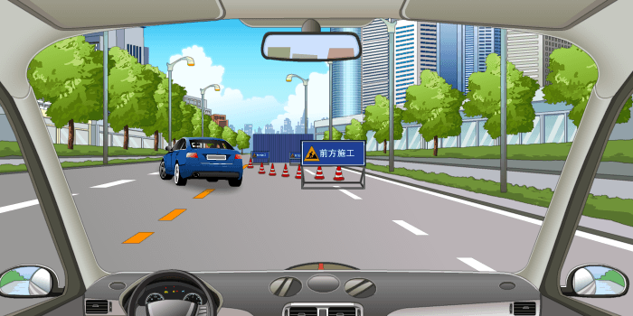 当遇到前车需要绕行障碍物的情况时,要及时对障碍物的情况进行判断,制定跟车避让路线,并留出足够的安全距离。跟车绕行障碍物时,可适当转动转向盘,采取大半径、长弧线的方式跟车绕过,不允许在临近障碍物时超车或急转向绕行。